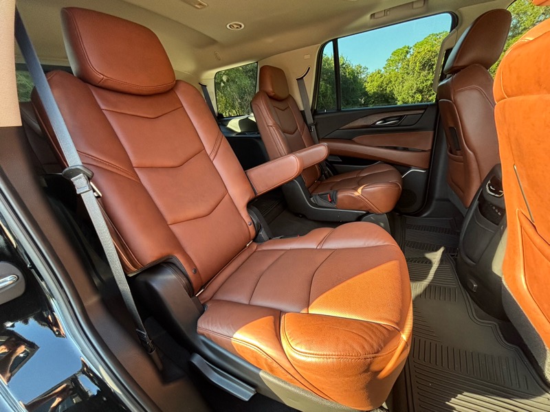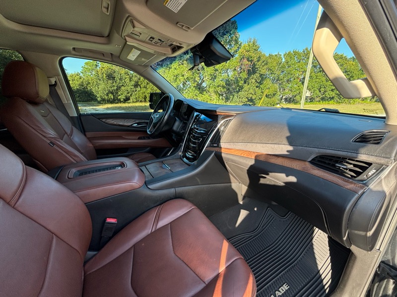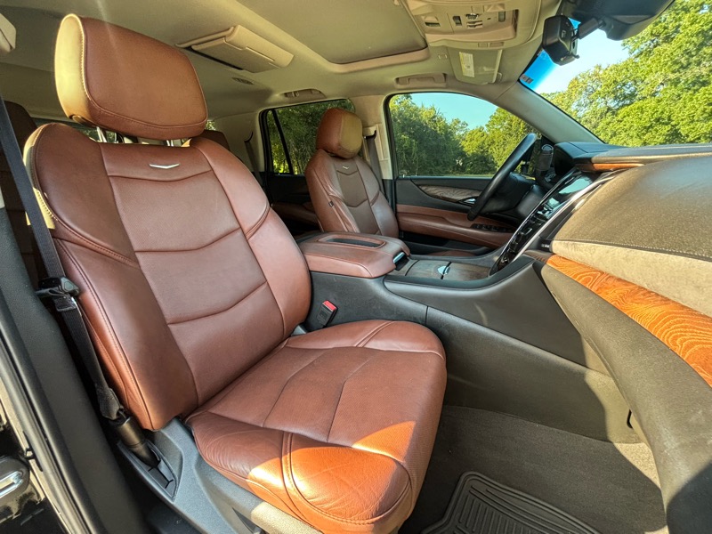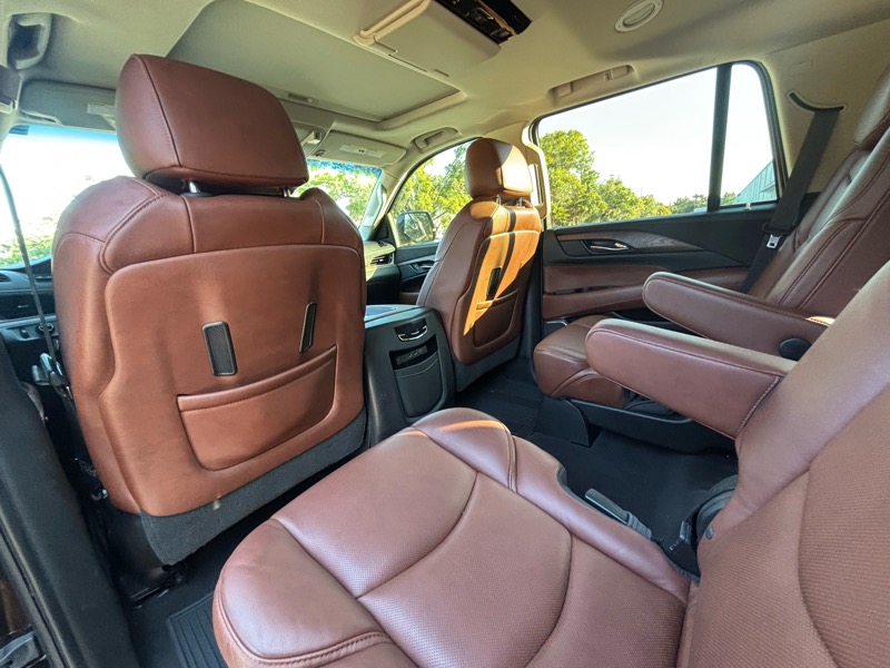 6.2L V8, Automatic, Leather, Sunroof, Heated/Cooled Seats, Dual Climate Control, Bluetooth, Apple Carplay, Android Auto, USB Ports, Aux Input Jack, Navigation, Back-Up Camera, 360 Camera, Bose Stereo System, Lane Keep Assist, Blind Spot Monitoring, Parking Assist, Heated Steering Wheel, Entertainment System, Third Row Seating, Tow PKG, Wireless Phone Charger, Power Seats, Power Locks, Power Mirrors, Power Liftgate, Power Windows, Power Tilt/Telescopic Wheel, Power Running Boards, Premium Wheels, Escalade All Weather Floor Mats, Power Adjustable Foot Pedals, Owners Manual, Heads Up Display.